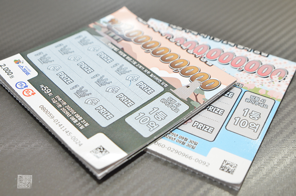 매주 꾸준히 복권을 구매하는 한 사람으로서 당첨자의 복권 용지에서 볼 수 있는 두 개의 똑같은 그림 옆에 '일십억 원'이 적힌 글을 한 번은 볼 수 있었으면 하는 바람이다. 아직 스피또2000 60회는 1등 한 세트를 비롯해 2등과 3등을 합쳐서 34장의 상위 등위 잔여수량이 있고, 59회는 2등 1억 원 3장과 3등 28장이 남았다.