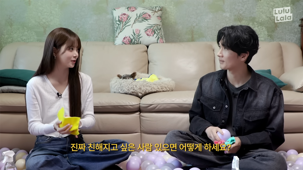 엄태구가 메인 MC를 맡은 <단순노동>의 첫 번째 게스트로 출연한 인물은 르세라핌에 소속된 멤버 중 한 명인 홍은채다. 놀랍게도 그녀는 올해 갓 20살이 되었다고 하는데… 엄태구의 입장에서는 나이 차가 제법 나는 여동생에 해당하면서도 아이돌인 홍은채를 어떻게 대해야 할지 몰라 쩔쩔매는 모습이 <단순노동 1화>의 포인트였다.
