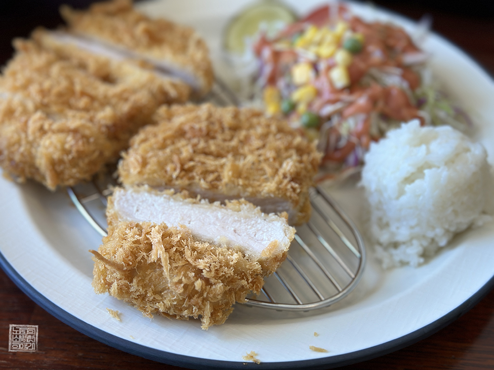 이미 겉보기부터 맛있어 보였던 등심 돈까스는 실제로 먹어보았을 때도 딱히 흠 잡을 곳 없이 맛있었다. <워크맨>의 '단순 작업' 코너에 출연했던 스윙시는 돈까스만큼 완벽한 음식은 없다고 말했었는데, 당시 돈까스를 먹으면서 나는 정말 그렇다고 생각했다. 등심 돈까스가 가진 바삭하고 튀김과 촉촉한 고기의 밸런스가 잘 맞았다.