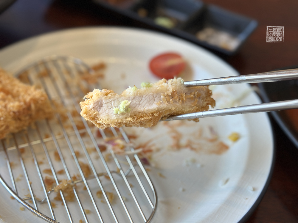 마지막 한 조각까지 돈까스 소스, 와사비, 소금 등을 번갈아 가면서 찍어 먹으면서 맛있게 먹을 수 있었다. 욕심을 부리면 치즈 돈까스까지 몇 덩어리 먹었으면 하는 바람도 있었다. 하지만 당시 3명이서 가게를 찾아 돈까스 2개와 함께 냉모밀, 떡볶이를 주문해서 먹다 보니 굳이 치즈 돈까스를 또 주문하지 않아도 배부르게 먹을 수 있었다.