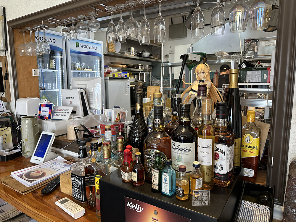 수제 돈까스 전문점만 아니라 펍으로 운영되는 곳이기도 한 만큼 여러 술병과 잔도 가게를 장식하고 있었는데, 그중 눈에 띄었던 바니걸 복장을 하고 있는 애니메이션 피규어다. 여러 애니메이션을 즐겨보는 나라고 해도 이 캐릭터는 어느 작품에서 등장하는 어느 캐릭터인지 알 수 없었는데… 역시 펍에는 바니걸이 어울렸다. (웃음).