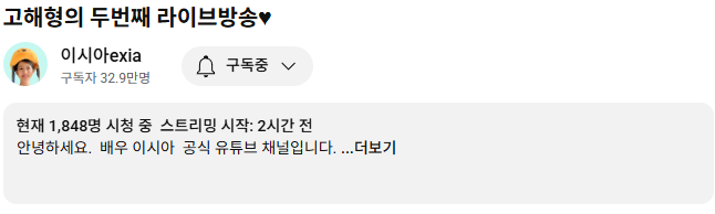 보통 콘텐츠라는 게 그런 빌런이 있어야 재미있는 콘텐츠가 나오는 법인데, 배우 이시아는 이제 녹화된 영상을 업로드하는 것만 아니라 많은 구독자가 원했던 라이브 방송까지 진행하고 있다. 2025년 5월 31일 첫 번째 라이브 방송을 계기로 2025년 6월 8일(일) 두 번째 라이브 방송을 하면서 팬들과 함께 게임을 즐기면서 소통을 했었다.