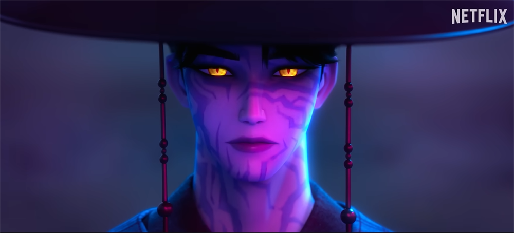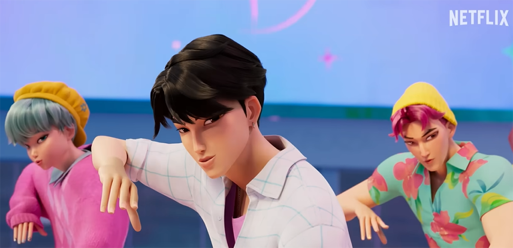 그리고 애니메이션 영화 <케이팝 데몬 헌터스>의 재미있는 점 중 하나는 바로 케이팝 스타로 활약하며 악귀를 퇴치하며 귀마가 현세로 넘어오지 못하도록 하기 위한 혼문을 완성하는 과정에서 라이벌이 출현했다는 점이다. 이 라이벌은 악귀를 퇴치하는 것이 아니라 케이팝 남성 그룹으로 데뷔한 악귀 저승사자들이 뭉친 그룹이었다.