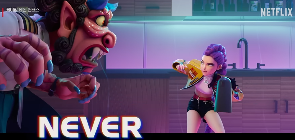 지나치게 화려하거나 혹은 유치하지 않은 선에서 저절로 흥이 돋는 노래와 함께 캐릭터들의 전투 장면이 잘 연출되어 있었다고 생각한다. 만약 일본 애니메이션 느낌이 강했다면 살짝 판타지적인 느낌이 강할 수도 있었을 것이다. 하지만 <케이팝 데몬 헌터스>는 메인을 케이팝 음악으로 활용한 덕분에 하나의 무비를 보는 듯했다.
