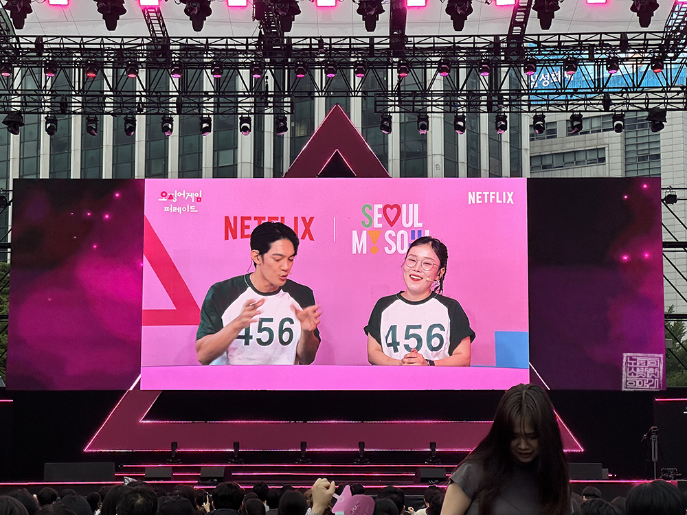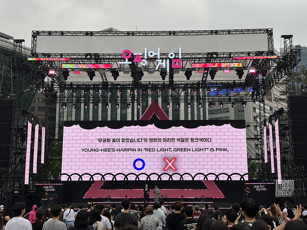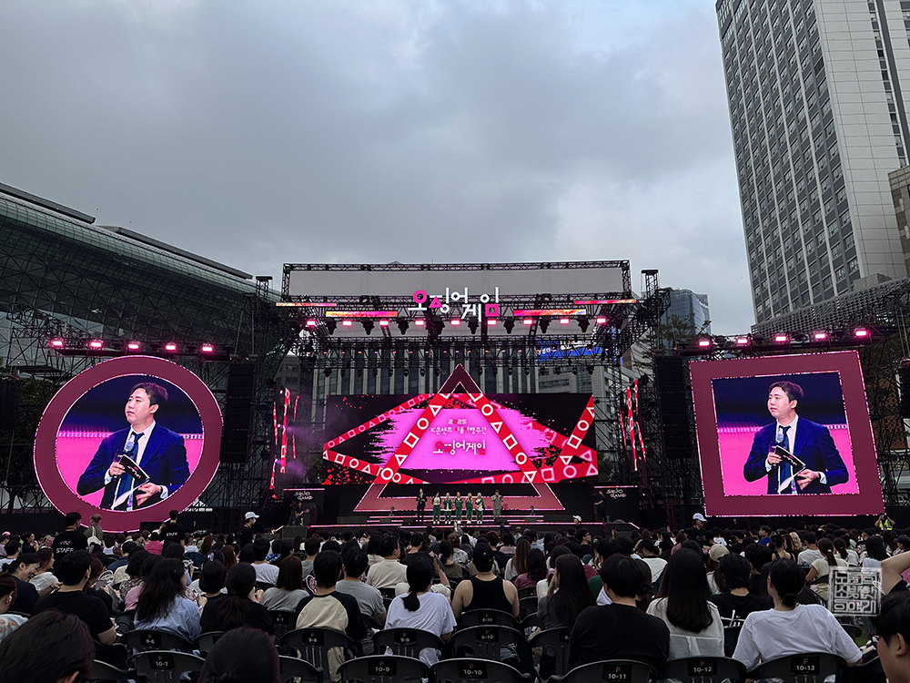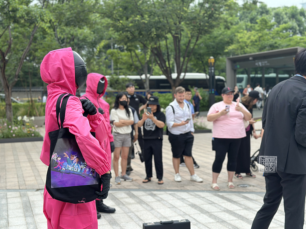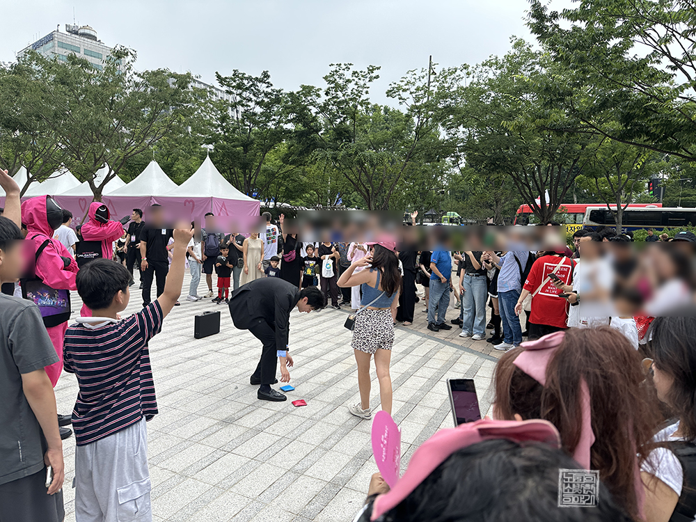 비록 대단히 습하고 더운 날이라고 해도 <오징어게임>이라는 콘텐츠를 좋아하는 사람들이 모인 서울광장은 인산인해를 이루고 있었다. 팬에 당첨된 사람들이 아니라고 해도 바깥에서 행사를 실시간으로 구경할 수 있다 보니 미리 좋은 자리를 선점하려는 사람도 있었고, 피날레 이벤트를 맞아 작은 이벤트에 참여하는 모습도 볼 수 있었다.