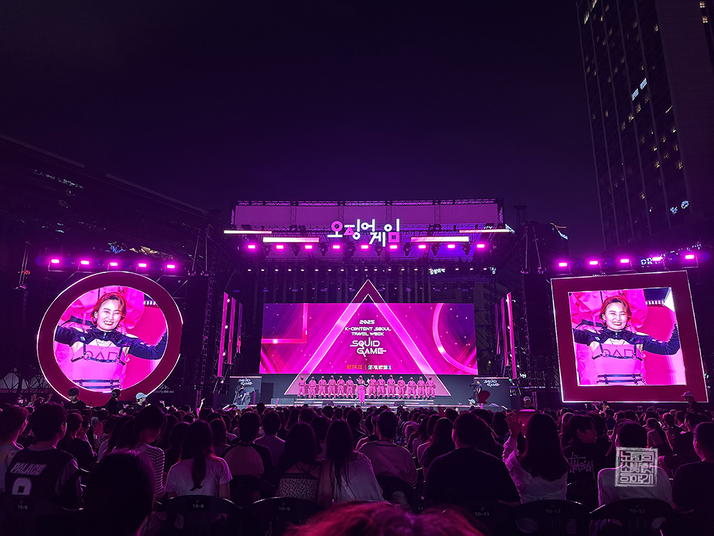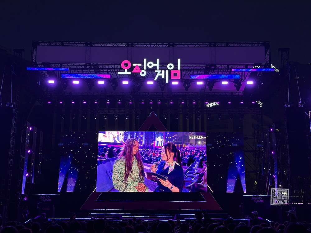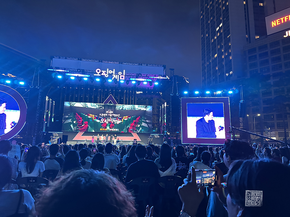 김해에서 서울까지 올라온 만큼 <오징어게임>이라는 작품을 장식한 주연 배우들과 함께 황동혁 감독의 모습을 비록 거리가 있더라도 두 눈으로 꼭 보고 싶었다. 모든 것이 필요한 과정이라고 해도 시간이 지체되는 가장 큰 원인 중 하나였던 퍼레이드가 조금이라도 더 빨리 끝나기를 바라면서 초조하게 무대를 보았다.