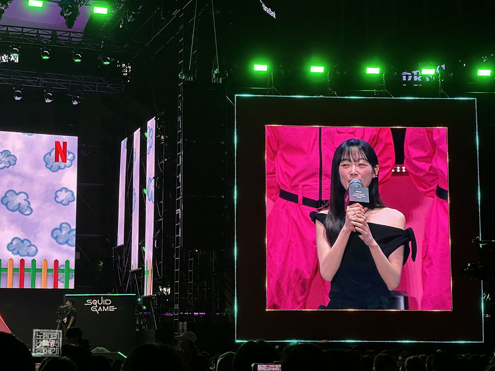 김해에서 서울까지 올라온 만큼 <오징어게임>이라는 작품을 장식한 주연 배우들과 함께 황동혁 감독의 모습을 비록 거리가 있더라도 두 눈으로 꼭 보고 싶었다. 모든 것이 필요한 과정이라고 해도 시간이 지체되는 가장 큰 원인 중 하나였던 퍼레이드가 조금이라도 더 빨리 끝나기를 바라면서 초조하게 무대를 보았다.