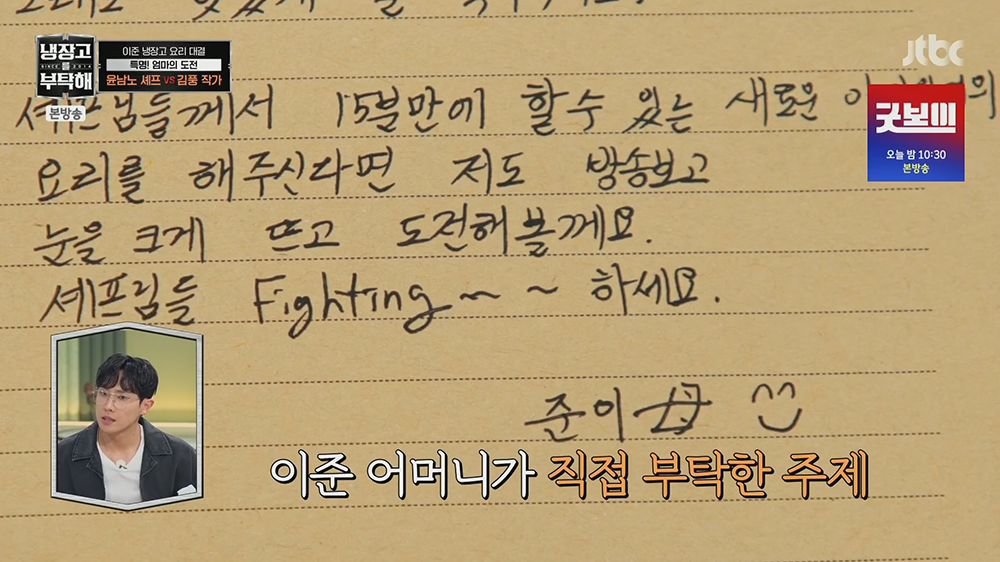 이준의 집에서 자전거로 15분 떨어진 곳에 있다고 하는 이준 어머니의 집은 이준이 "엄마, 나 갈게! 밥 좀 줘."라고 말하면 비상이 걸린다고 한다. 이준 어머니는 아들이 집에 도착해 반찬이 안 되어 있으면 맨밥만 먼저 먹다 보니 15분 만에 할 수 있는 색다른 요리를 셰프들에게 부탁하셨는데, 여기서 김풍이 요리한 마미풍은 극찬이 쏟아졌다.
