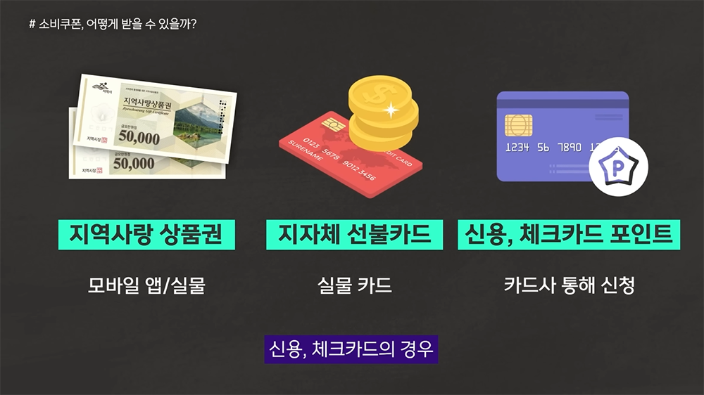 아무래도 지역 경제 활성화를 목적으로 하는 소비쿠폰이다 보니 지역사랑 상품권으로만 지급하는 게 가장 바람직할 것이다. 하지만 오늘날 사람들이 실물 화폐를 들고 다니는 것보다 카드를 들고 소비하는 것을 생각하면 지자체 선불카드나 신용, 체크카드 포인트로 지급하는 것도 나쁘지 않아 보인다. 오히려 이게 더 편했다.