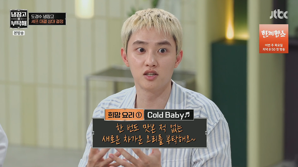 덕분에 요리를 하는 것을 즐기는 이미지가 굉장히 강한 인물이다 보니 그의 냉장고 속 재료를 활용해 어떤 요리가 나올지 무척 궁금했다. 하지만 그의 냉장고는 요리를 즐긴다고 말하는 것과 달리 재료가 많지는 않았는데, 취사병으로 군 생활을 하다 제대를 한 이후에 요리를 많이 하지 않는다고 밝혔다. 이건 출연진 모두가 이해했다.