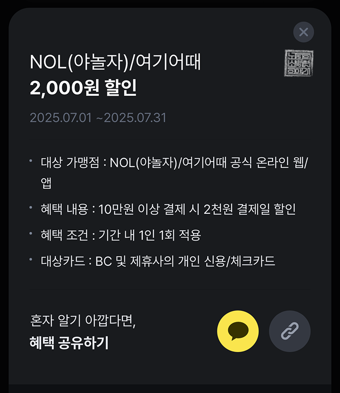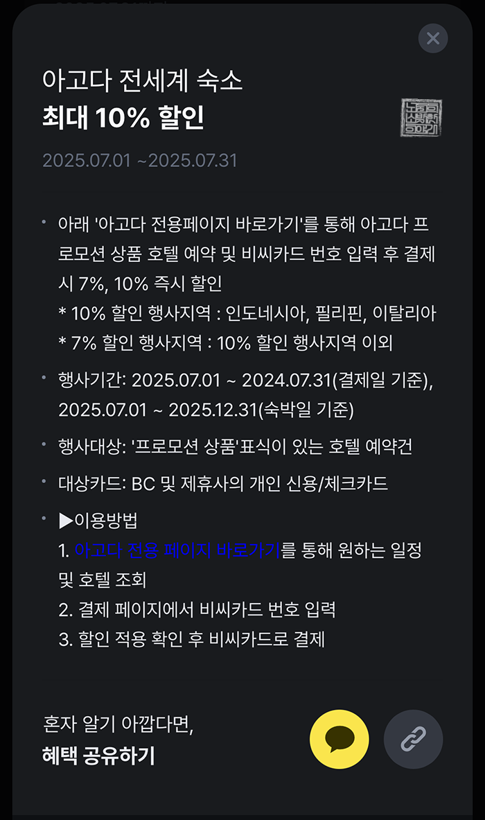 2025년 상반기가 시작하는 7월을 맞이한 이후 벌써 일주일이 넘게 지났다. 이 일주일 동안 나는 BC카드가 카드 연체로 정지되어 있었던 탓에 BC카드를 사용하는 유저들이 챙겨야 하는 페이북 마이태그 할인을 확인하지 못했는데, 겨우 카드 연체를 끈 시점에서 오늘은 이번에 받았던 BC카드 할인 정보를 간단히 소개하고자 한다.