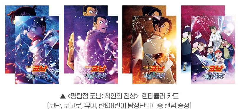 나는 애니메이션 극장판 <명탐정 코난 척안의 잔상>을 가까운 롯데시네마에서 보았기 때문에 롯데시네마 특전을 받을 수 있었다. 롯데시네마에서는 개봉 1주 차를 맞아 주중에는 코난, 코고로, 유이, 어린이 탐정단 렌티큘러 카드 중 하나를 받을 수 있었고, 주말에는 칸스케, 타키아키, 아무로 렌티큘러 카드 중 하나를 받을 수 있었다.