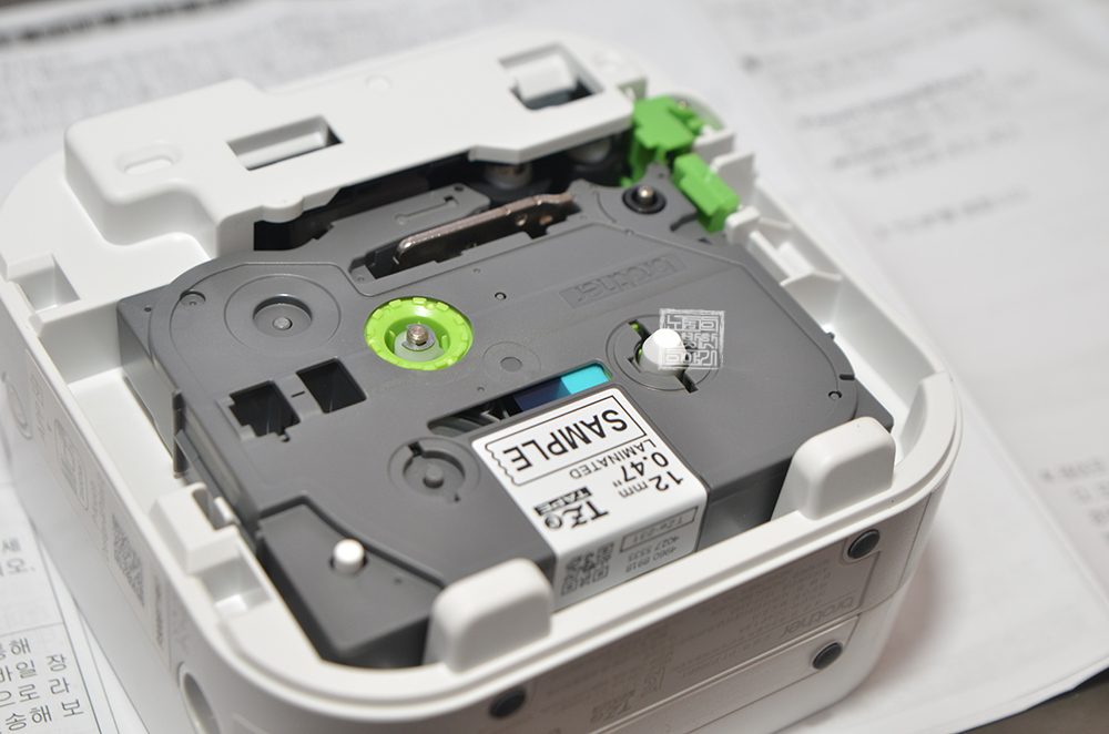 이 라벨 프린터에 사용하는 라벨의 규격은 12mm 라벨 카트리지로, 브라더 정품 라벨 카트리지를 구매해서 사용할 수도 있지만 호환이 가능한 라벨 카트리지를 구매하면 더 저렴하게 사용할 수 있다. 처음 브라더 블루투스 스마트 라벨 프린터를 구매할 때 들어 있는 정품 라벨 카트리지는 어디까지 샘플이다 보니 길이가 길지 않았다.