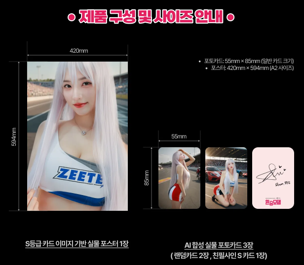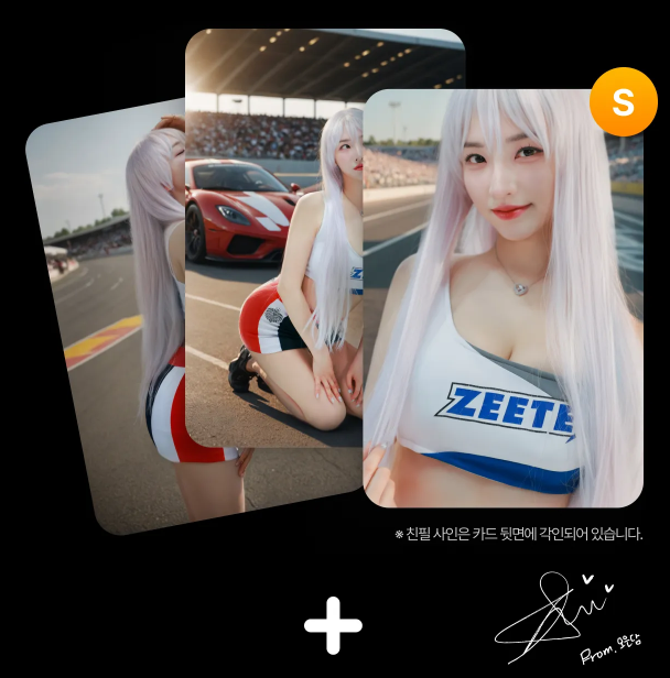 비록 경매로 눈치 싸움을 해야 하는 실착 의상 굿즈보다 안정적으로 내가 응원하는 인플루언서 굿즈를 손에 넣을 수 있는 방법은 스페셜 포토카드 팩을 구매하는 것이다. <환승모델> 홈페이지에서 구매할 수 있는 포토카드 스페셜 팩은 기본 카드 2장과 함께 친필 사인이 들어간 S급 카드와 함께 실물 포스터 1장을 받을 수 있다.