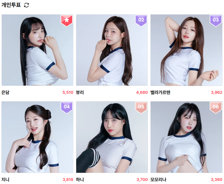 현재 2위 뷰리는 4,680표를 기록하고 있고, 3위 벨라가르텐은 3,962표를 기록하고 있기 때문에 은담의 5,510표는 절대적으로 우위를 점하고 있다고 말하기는 어렵다. 특히, 4위 지니가 3,818표로 3위 벨라가르텐을 바싹 추격하고 있는 데다가 4위부터 6위에 올라 있는 인플루언서들도 팬들도 상당히 화력이 셌다.