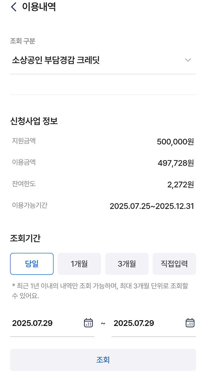 소상공인 부담경감 크레딧 잔여금액 확인 방법