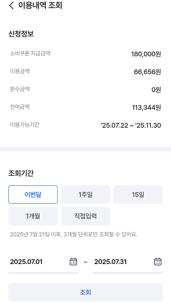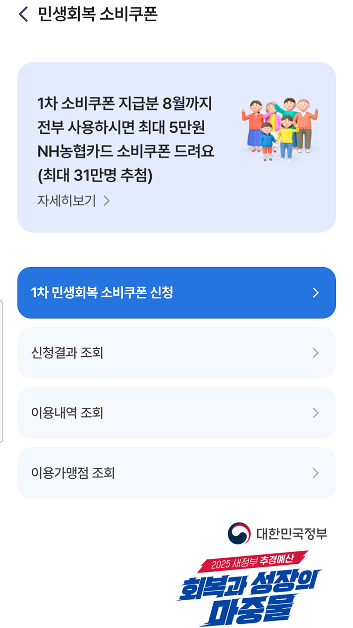 농협카드 민생회복 소비쿠폰 잔여금액 확인 방법