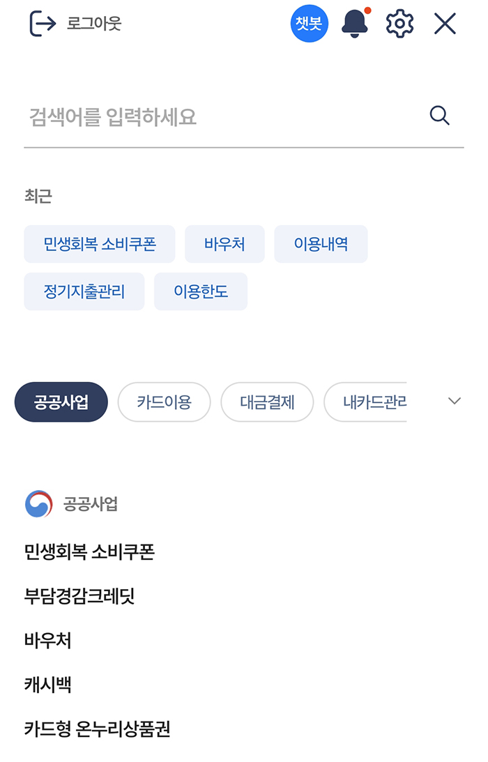 2. 간단하다. 여기서 공공사업 카테고리의 '부담경감크레딧'을 클릭하면 소상공인 부담경감 크레딧 이용내역을 쉽게 확인할 수 있다. 모 사이트에서는 바우처를 클릭한 이후 소상공인 부담경감 크레딧을 검색해서 찾아보라고 말하기도 하는데, 그냥 부담경감크레딧을 클릭할 경우 바로 아래의 화면을 확인할 수 있었다.