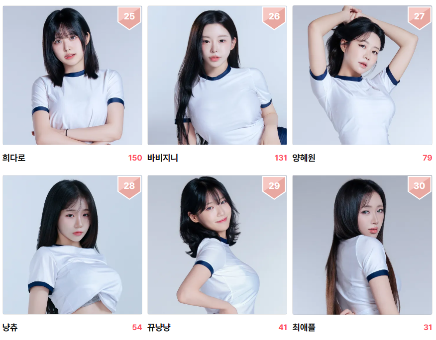 탈락이 확정된 환승모델 개인투표 부문 하위권