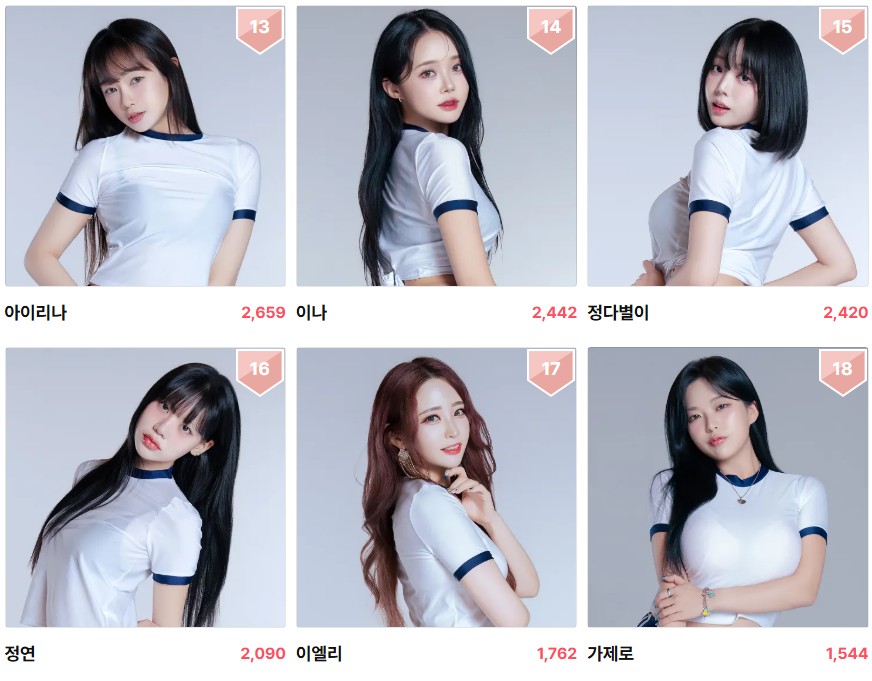 1위부터 3위는 물론, 상위 10위까지는 어느 정도 2라운드 진출이 확정적이라고 생각한다. 하지만 중위권에서 표를 다투고 있는 13위 아이리나부터 18위 가제로까지는 마지막 팬들의 환승에 따라 순위가 크게 요동칠 수 있다. 실제로 15위 정다별이와 16위 정연의 표 차이는 330표 차이로… 남은 시간 동안 충분히 뒤집어질 수도 있었다.