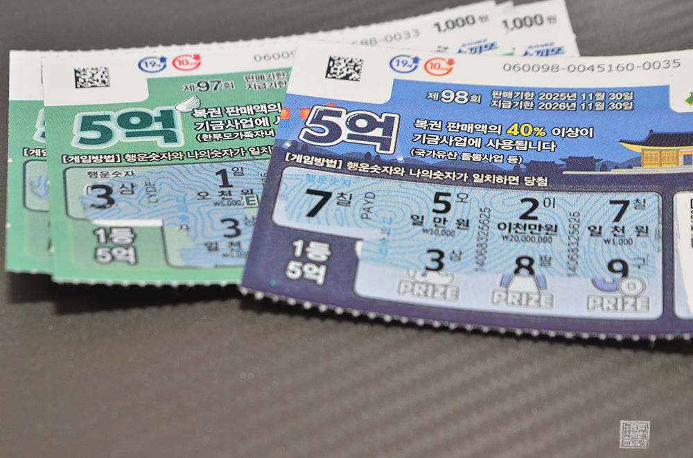 아쉽게도 내가 구매한 스피또1000 15장을 모두 확인해보니 모두 1천 원만 당첨이 되었다. 스피또1000 98회는 1천 원 한 장, 97회는 1천 원 네 장이 당첨되어 그래도 다시 복권을 바꿀 기회가 생겼다. 요즘 아파트 입구 상가에 새로운 복권 판매점이 생겼다 보니 퇴근하는 길이 아니라 출근하는 길에 복권을 교환해야 할 것 같다.