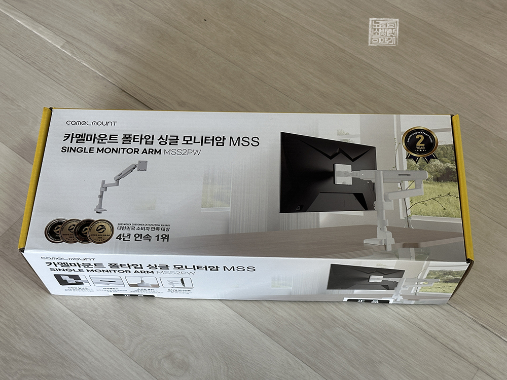 여기서 가장 좋은 해결책은 바로 모니터암을 이용하는 것이다. 시중에 판매되는 모니터 암 중에서는 폴타입 모니터암이 제법 저렴하게 판매되고 있는데, 다행히 나는 운 좋게도 블로그 체험단을 통해 선정된 모니터 암 한 개를 손에 넣었기 때문에 사무실 책상에 모니터 암을 이용해서 다른 한 대의 모니터를 정리하고자 했다.