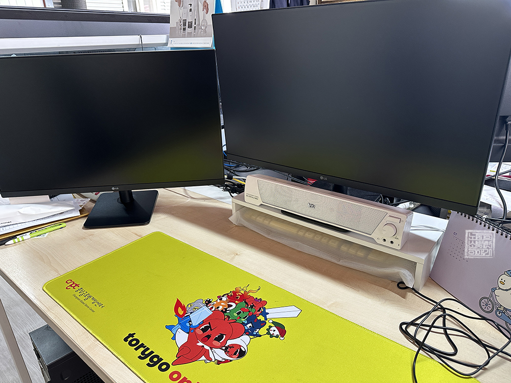평소 사무실에 마련된 내 책상 위에는 모니터 한 대만 놓여 있었다. 사무실에서 오랜 시간 동안 일하는 경우가 많지 않았다 보니 모니터 한 대로도 충분히 간단한 작업들을 할 수 있었는데, 가면 갈수록 일이 늘어나서 이제는 모니터 두 대가 아니면 디자인 작업이나 여러 형태의 작업을 하기가 어려워져 모니터 한 대가 더 필요했다.