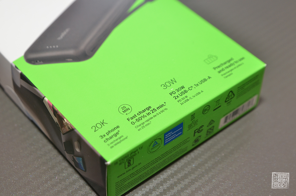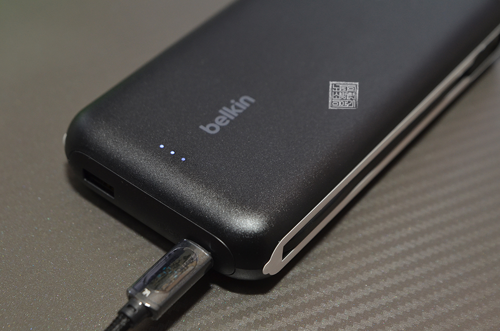 그리고 충전은 마찬가지로 USB-C 타입 포트를 통해 해야 했는데, 처음 배터리를 구매했을 때부터 배터리는 총 4칸 중에서 3칸이 차 있다 보니 거의 완충에 가까운 상태로 배송을 받아볼 수 있었다. 일부 저렴한 보조배터리는 이렇게 배터리 잔량 표시등이 없어 불편한 경우가 있는데, 역시 벨킨 정도의 브랜드가 되면 잔량 표시등은 빠질 수 없었다.