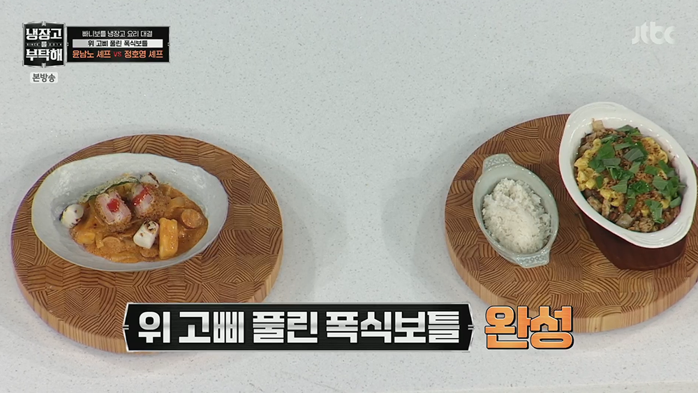 첫 번째 승부에서 정호영 셰프는 일본에서 흔히 볼 수 있는 햄카츠를 곁들인 로제 떡볶이로 빠니보틀의 마음을 사로잡는 데에 성공했다. 역시 햄카츠는 실패하지 않는 최고의 토핑이었고, 떡을 유독 좋아하는 빠니보틀은 떡볶이를 선택하지 않을 수가 없었다. 더욱이 카레향이 들어간 케첩과 소시지가 의외의 시너지 효과를 낳아 크게 성공했다.