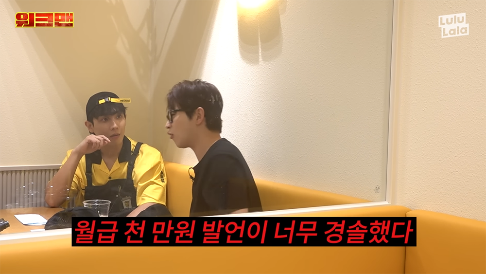 이번 <워크맨> 메가커피 편에서 사람들의 반응이 뜨겁다 보니 쇼츠로 자주 돌아다니는 장면과 짤 중 하나가 첨부한 사진에서 볼 수 있는 이준의 "월 천 찍지 않아요?"라는 발언이다. 프랜차이즈 카페의 현실을 모르다 보니까 이런 말을 할 수 있는 것인데, 다행히 이준은 악의가 있는 게 아니라 원래 그런 인물이다 보니 악성 댓글은 달리지 않았다.