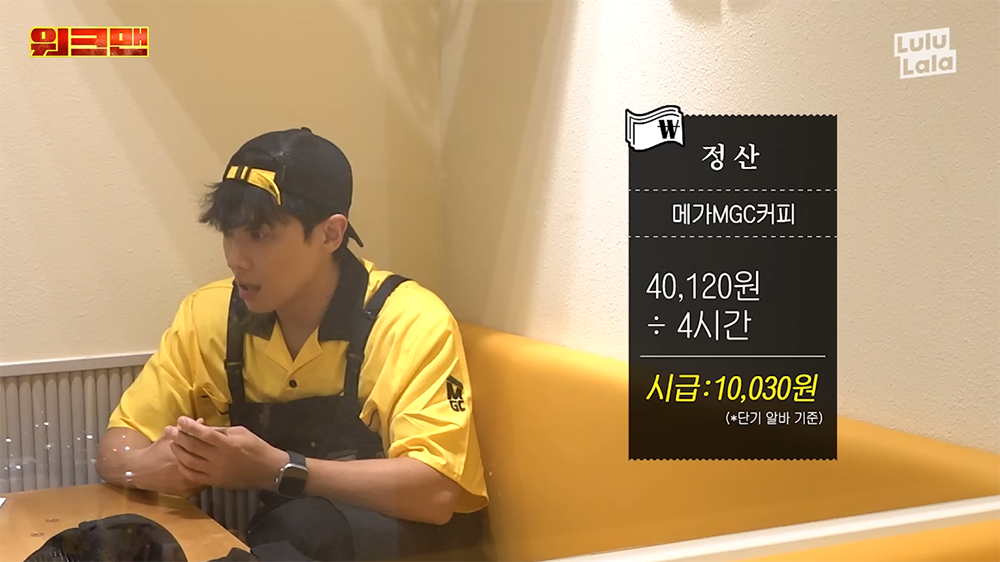 약 4시간 동안 빡세게 일을 한 이후 딘딘과 이준이 받은 임금은 최저 임금 10,030원에 맞춘 40,120원이었다. <워크맨>을 본다면 해당 임금은 단기 알바 기준의 임금이라는 것을 알 수 있는데, 즉, 메가커피에서 장기 알바로 일할 경우 조금 더 많은 임금을 받을 수 있는 것 같았다. 그게 정확히 어느 정도의 금액인지는 여러분이 직접 알아보자.