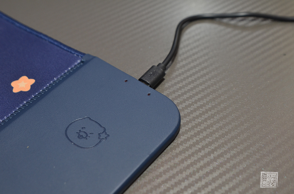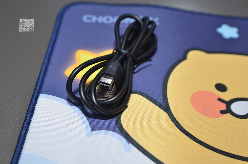 무선 충전 마우스 패드라고 해도 기본적으로 전력을 끌어와야 하다 보니 USB C to A 케이블을 통해 전원을 공급해야 한다. 이 충전 케이블의 길이가 그렇게 긴 편은 아니다 보니 컴퓨터 본체 USB 포트에 춘식이 듀얼 무선충전 마우스패드를 연결해서 사용하고자 할 경우 다소 불편함이 있을 수 있으니 구매하기 전에 주의하도록 하자.