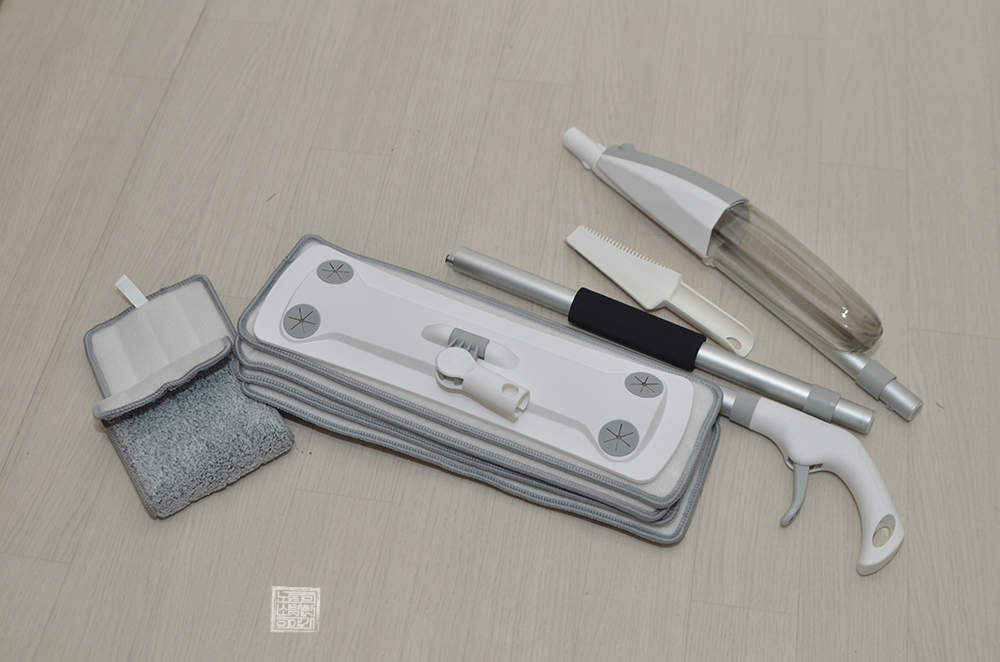 여러 제품을 고민하다가 내가 구매한 건 가성비가 가장 좋아 보이는 코멧 스프레이 밀대걸레 세트다. 첨부한 사진에서 볼 수 있듯이 밀개 걸레도 5장이 기본적으로 들어가 있을 뿐만 아니라 물통에 물을 담아서 물을 분사하면서 청소할 수 있는 밀대걸레였다. 이 정도면 집안을 구석구석 청소하는 데에도 편리할 것 같았다.