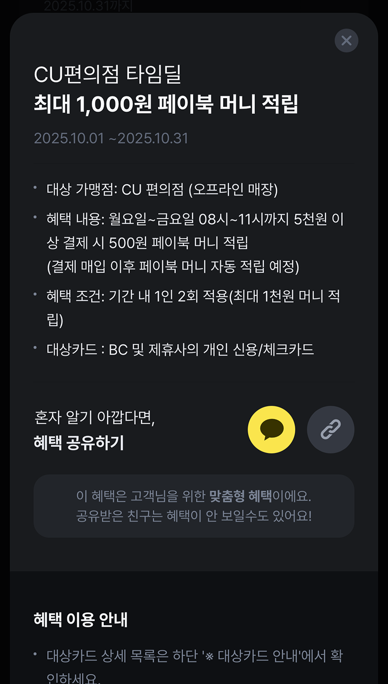 10월은 시작과 함께 긴 추석 연휴를 앞두고 있다 보니 급히 처리해야 할 일이 많았다. 아쉽게도 급하게 처리해야 할 그 일은 2일까지 모두 끝나지 않은 탓에 10일에 최종적으로 거래처와 최종 확인을 하기로 했는데, 이렇게 시간을 보내는 동안 나는 10월 페이북 마이태그 할인을 미리 체크한다는 것을 깜빡 잊고 말았다.