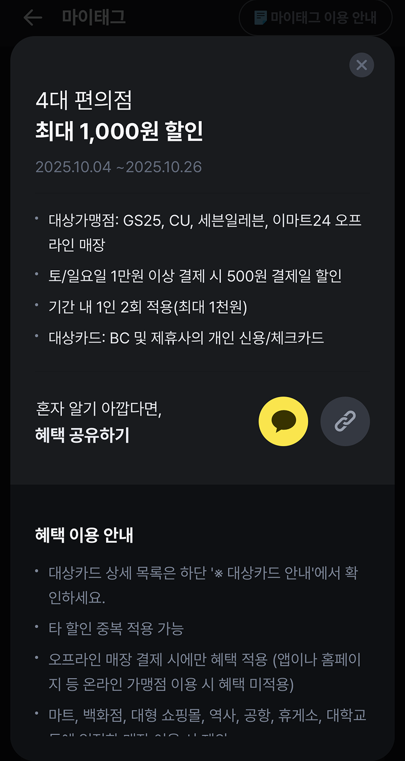 BC카드 10월 페이북 마이태그 4대 편의점 할인 정보