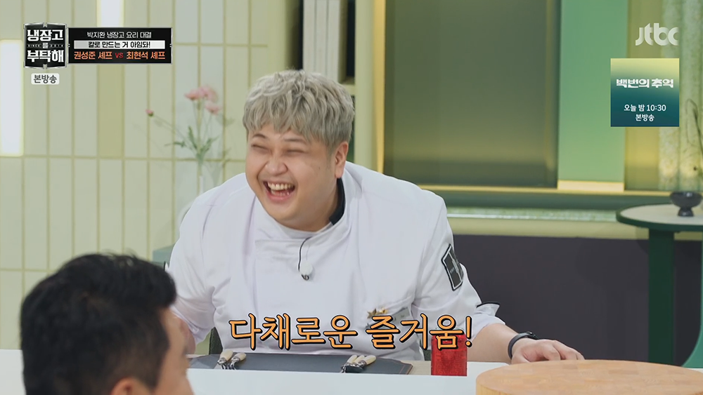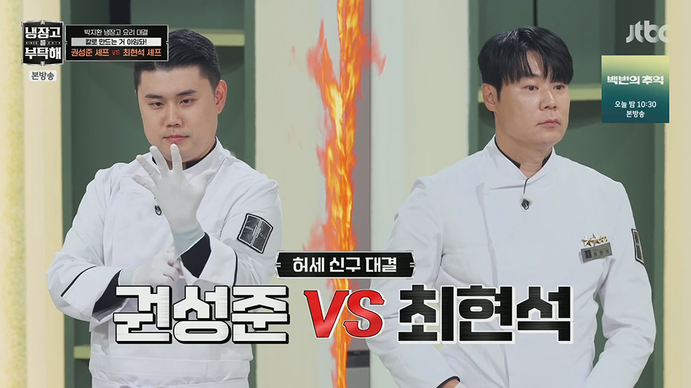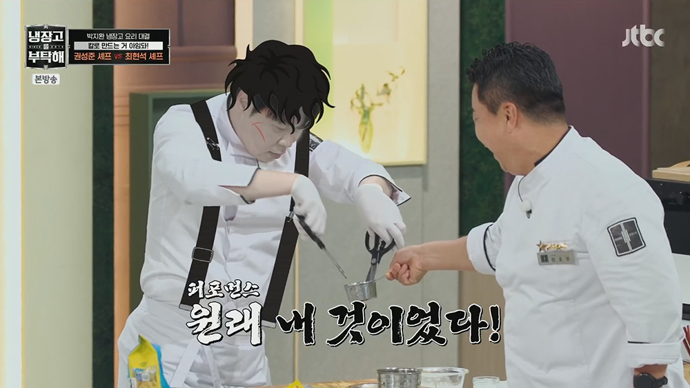 그렇게 막을 올린 칼 대신 가위만 사용하는 요리 대결은 최현석 셰프와 권성준 두 셰프의 대결이 되었다. 권성준 셰프는 가위도 칼처럼 잘 사용하는 모습에 모두가 감탄했고, 최현석 셰프도 역시 가위를 마찬가지로 잘 사용하면서도 그가 예능 프로그램 <냉장고를 부탁해>에서 가진 허세꾼의 모습을 가득 보여주는 게 정말 대박이었다.