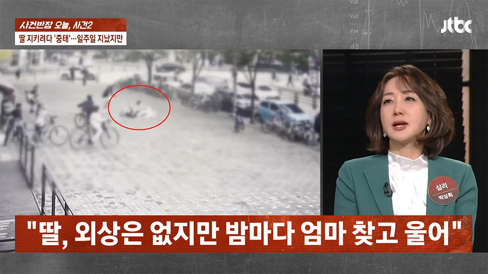 며칠 동안 의식이 없다가 기적적으로 눈을 떴다고 해도 의식이 정확힌 돌아온 상태인지 확인할 수 있는 지금은 또 어떻게 될지 모른다고 한다. 이 사건을 눈앞에서 겪은 아이는 당연히 깊은 트라우마에 시달릴 수밖에 없는데… 당장은 사건을 인지하지 못했다고 해도 밤마다 엄마를 찾는 아이를 보면 아빠는 무척이나 괴로울 것으로 생각한다.