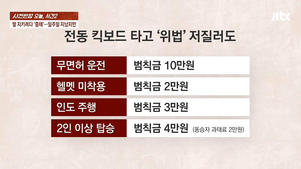부디 이번 사건을 계기로 여야가 함께 하든, 여당이 독자적으로 추진하든, 전동 킥보드 범칙금의 단위를 바꾸어 우리의 안전을 확보할 수 있었으면 하는 바람이다.