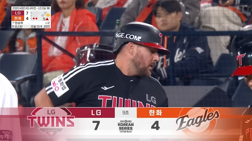이 실점을 9회에 만회하지 못한 한화는 그렇게 한국 시리즈 1승 3패로 몰리게 되었다. LG는 딱 1승만 더 거둔다면 이제 2025 한국 시리즈 우승을 차지할 수 있다. 이제부터 한화는 총력전으로 나설 수밖에 없는데… 한화 팬들 사이에서는 8회에 2사 이후 안타를 맞았다고 해도 와이스를 9회까지 계속 끌고 갔어야 했다는 아우성이 많다.