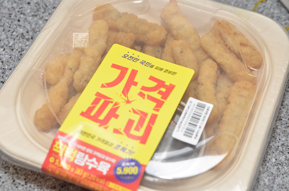 그래서 편의점에서 판매하는 도시락이나 반찬 종류는 특별한 경우가 아니면 아주 가끔 먹는다. 이번에도 그렇게 호기심 반, 배고픔 반으로 구매한 것이 첨부한 사진에서 볼 수 있는 찍먹 탕수육이다. 이걸 도시락이라고 말해야 할지 혹은 즉석식품이라고 말해야 할지 조금 모호하기는 해도 가격은 딱 5,900원이었다.