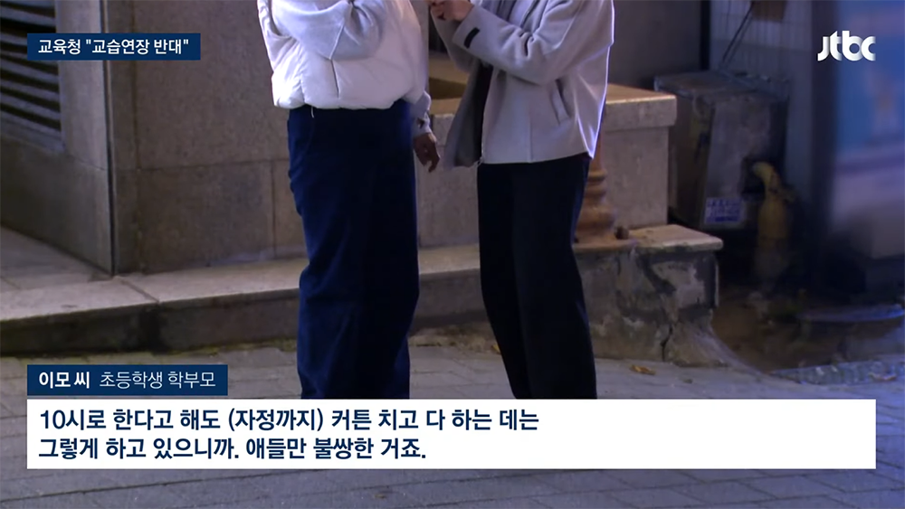 보통 수능을 앞두게 되는 고2~고3 학생들은 기본적으로 12시까지 공부를 하는 경우가 많다 보니 이 조례안이 크게 부담이 되지 않을 것으로 생각하는 사람이 있을지도 모른다. 하지만 학원에서 보내는 일과를 마친 이후 혼자 공부를 하면서 학교 숙제를 해결하거나 추가 비용 부담 없이 공부를 하는 것과 비교한다면 크게 다르다.