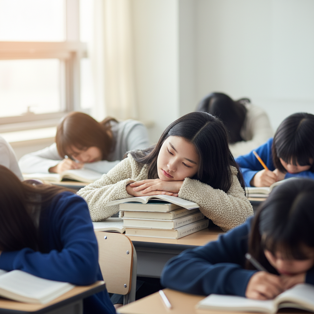 그렇게 직장인들이 야근을 하거나 야근의 잔업을 하는 느낌으로 아이들은 학교 과제를 하거나 하루를 마무리하고 내일을 준비하다 보면 자연스럽게 새벽 1시가 가까워진다. 그때 비로소 아이들이 잠을 자고, 또 아침 6~7시에 일어나야 하다 보니 잠이 부족할 수밖에 없다. 학교에서 많은 아이들이 수업 시간에 잠을 자는 이유였다.