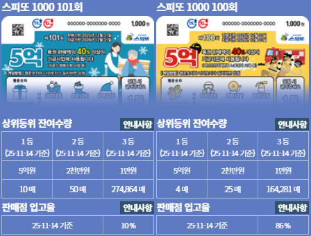 스피또1000 101회 판매 시작 100회 1등 잔여수량 살펴보니