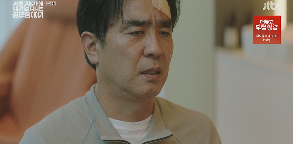 정신과 의사와 이야기를 주고받으면서 비로소 자신이 생각지 못한 시점에서 문제를 생각해 볼 수 있게 된 김 부장은 오랜만에 그의 형을 만나러 간다. 비록 술에 살짝 기대기는 했어도 그는 평소의 자신이라면 절대 하지 않을 질문을 던지면서 형과 대화를 하면서 자신의 마음속에 있던 응어리를 비로소 해소하는 모습을 10화에서 볼 수 있었다.