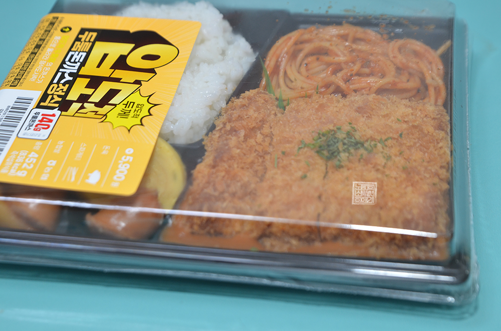 하지만 CU편의점에서 구매할 수 있는 압도적 두툼 돈까스 정식은 5,900원밖에 하지 않기 때문에 가성비와 가심비를 모두 갖추고 있다고 생각한다. 돈까스와 밥을 먹으면서 살짝 물리면 스파게티를 한 젓가락 먹으면 된다. 무엇보다 도시락이라고 해도 학교 급식처럼 작은 곁들임 반찬이 함께 나온다는 것도 매력적이었다.
