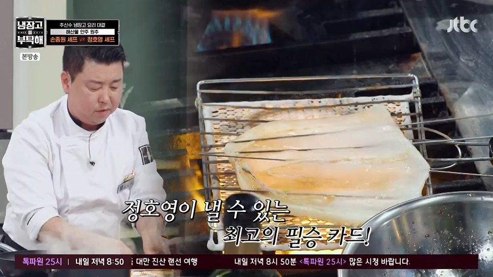 정호영 셰프는 술을 좋아하고 해산물을 좋아하는 사람이라면 누구나 알 수밖에 없는 익숙한 맛의 오징어 구이 요리를 진행했다. 손종원 셰프가 너무나 먹음직스러운 연어 스테이크를 통해 시선을 받았다면, 정호영 셰프는 마치 일본 선술집에서 먹는 듯한 오징어 구이를 선보이면서 추신수만 아니라 출연진의 시선을 사로잡았다.