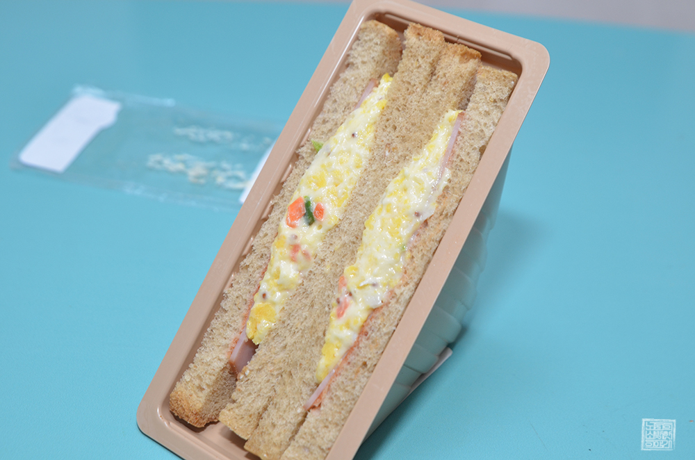 그리고 실제로 에그마니 샌드위치를 본다면 첨부한 사진에서 볼 수 있듯이 계란을 비롯한 내용물이 충분히 들어가 있다. 계란과 함께 버무려진 당근을 비롯한 다양한 야채들은 씹는 맛이 있을 만큼 충분히 신선하고 건더기 크기도 제법 있었다. 아마 이 부분 때문에 사람들 사이에서는 호불호가 있을 수도 있을 것 같다.