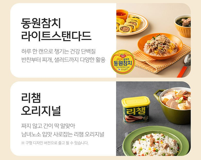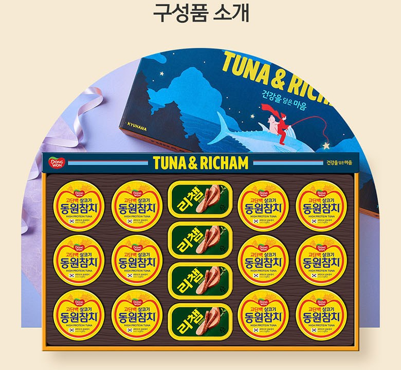 해당 제품을 추천하고 싶은 이유는 남녀노소 세대불문하고 많은 사람에게 사랑을 받는 식재료인 동원참치와 리챔이 들어가 있기 때문이다. 요즘처럼 경기가 어려운 시기에는 다른 어떤 것보다 생활비에 보탬이 되는 게 좋다. 하지만 그렇다고 해서 칫솔이나 치약 세트, 샴푸 세트를 선물하면 개인의 취향과 맞지 않아서 문제가 생긴다.