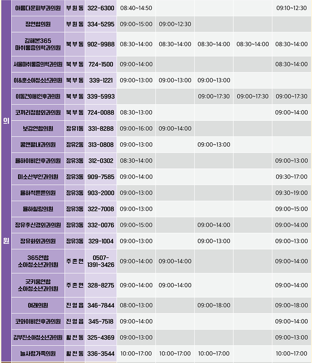 | 구분 | 의료기관 (병원/위원) | 약국 (문 여는 약국) |