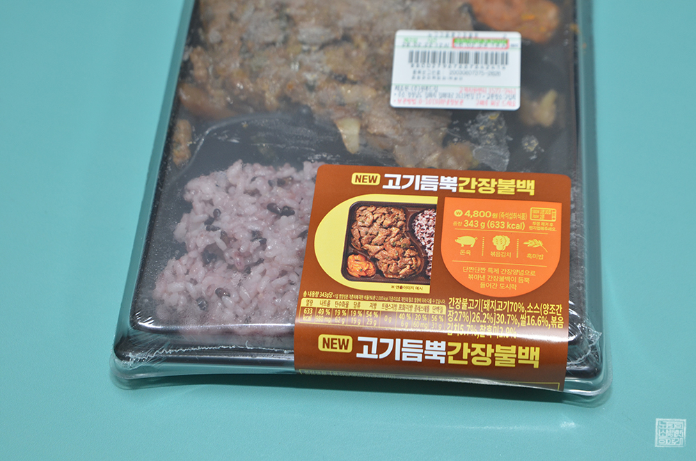 어떻게 보면 고기의 양이 살짝 적어 보일 수도 있지만, 고기듬뿍간장불백 도시락 한 끼의 중량은 343g으로 칼로리가 633이기 때문에 한 끼를 든든하게 채울 수 있는 수치다. 물론, 그만큼 나트륨이 꽤 많이 들어가 있다는 게 단점이기는 해도 편의점 도시락을 먹는다고 하면 그 점은 감수할 수밖에 없었다.